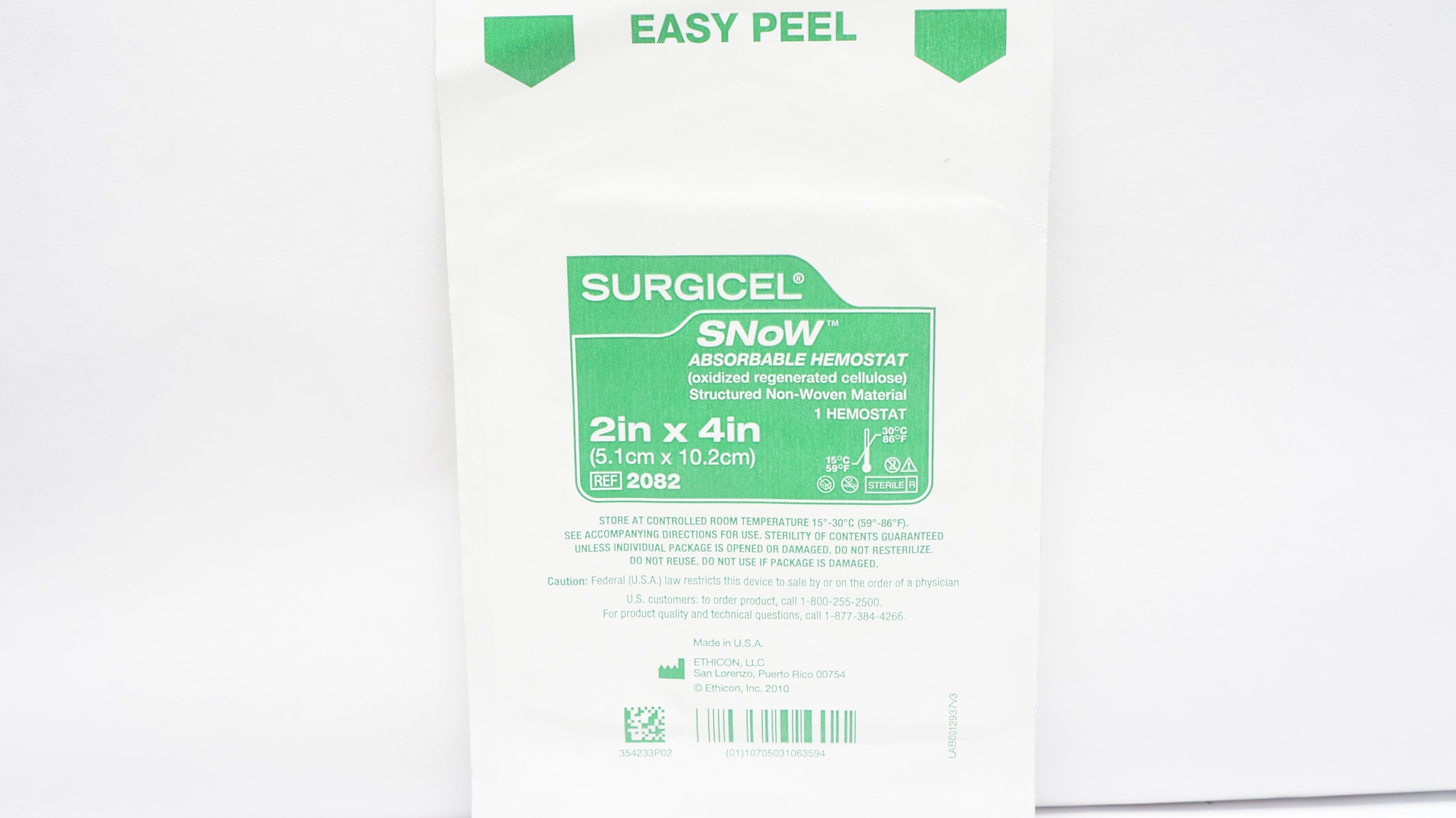 - Ethicon 2082 Surgicel SNoW Absorbable Hemostat 2inch x 4inch (x)