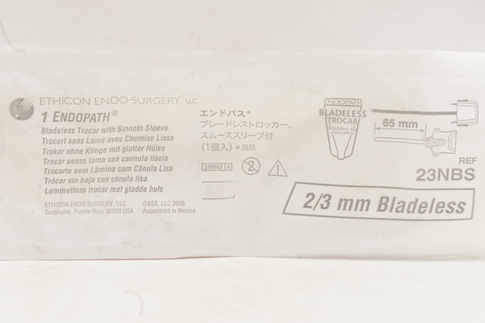 - Ethicon 23NBS 1 Endopath Bladeless Trocar with Smooth Sleeve 65mm