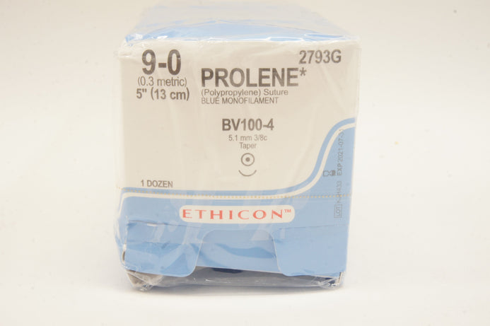 Ethicon 2793G 9-0 PROLENE BV100-4 5.1mm 3/8cc Taper 5inch - Box of 12