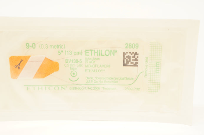 Ethicon 2809 9-0 Ethilon Nylon Suture Black Monofilament BV130-5 3/8c 6.5mm Taper, 5inch
