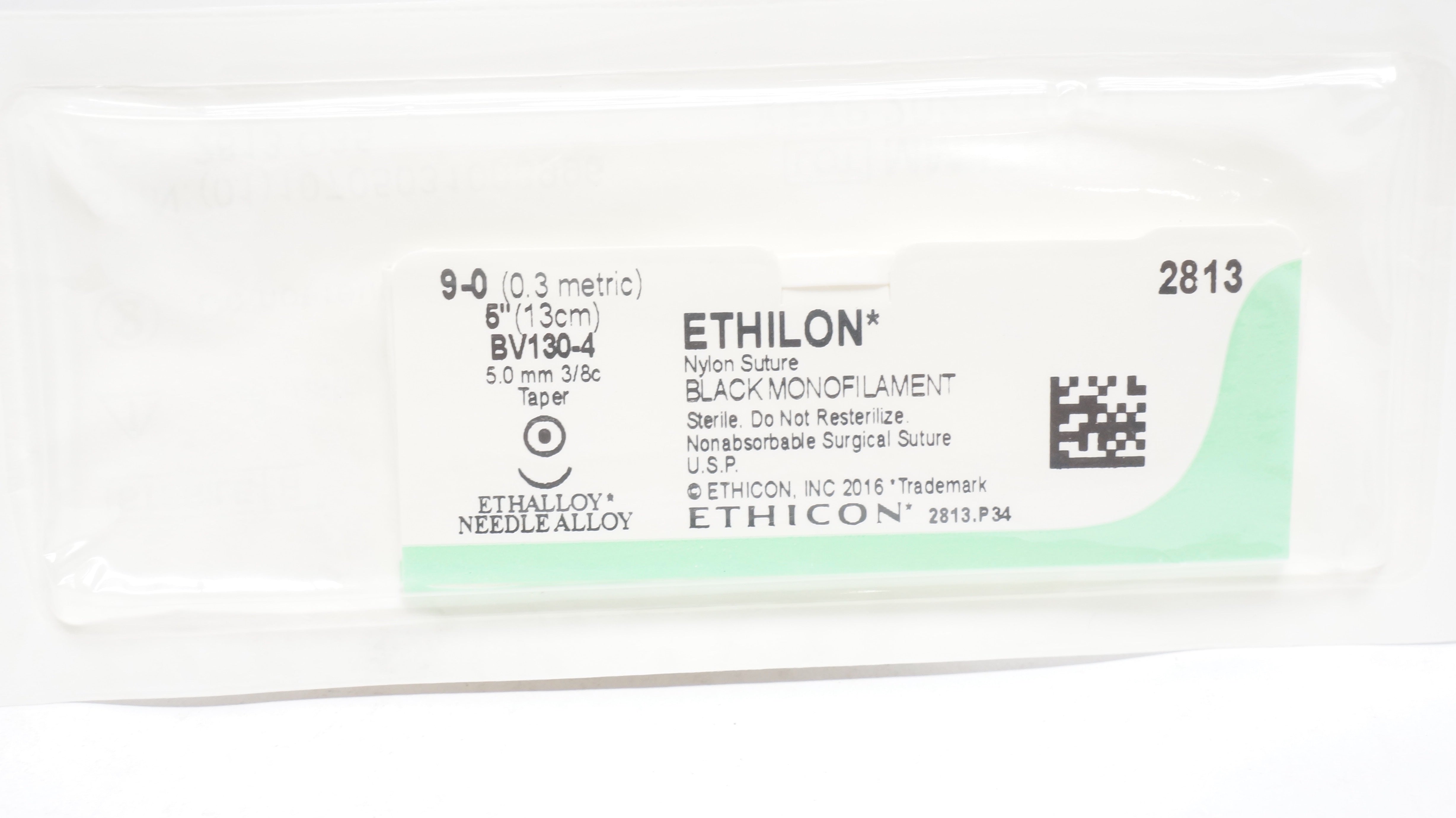 - Ethicon 2813 9-0 Nylon Stre. Monofilament Black, 5in BV130-4 Taper 5.0mm (x)