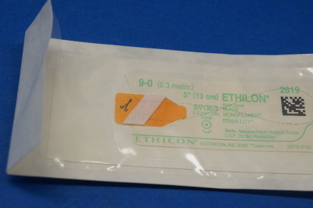 Ethicon 2819 ETHILON, BV130-3 3.8mm 3/8c Taper, Black Monofilament 5", Size 9-0