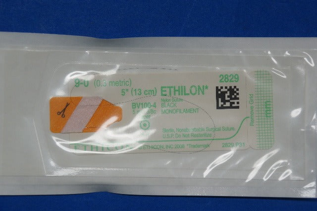 Ethicon 2829 ETHILON, BV100-4 5mm 3/8c Taper, Black Monofilament, 5", Size 9-0