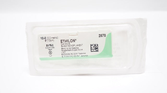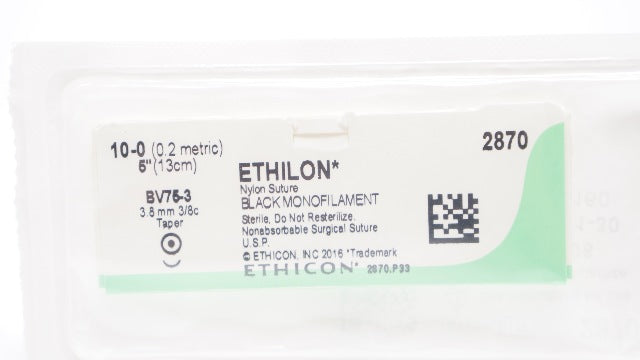 Ethicon 2870 10-0 Ethilon Nylon, BV75-3, 3.8mm 3/8c Taper, 5inch