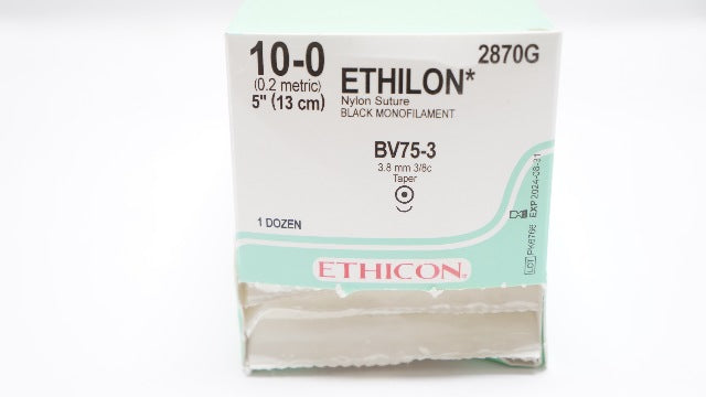 Ethicon 2870G 10-0 ETHILON Nylon Suture Black Monofilament BV75-3 3.8mm 3/8c Taper, 5inch
