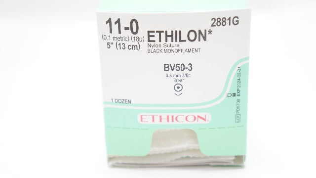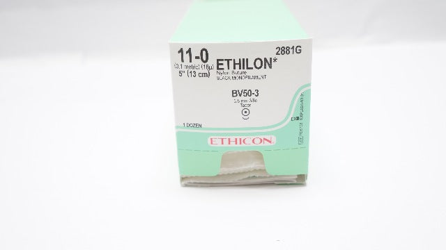 Ethicon 2881G 11-0 Ethilon Stre BV50-3 3/8c 3.8mm Taper 5inch (x)- Box of 12