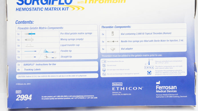 - Ethicon 2994 Surgiflo w/Thrombin Hemostatic Matrix Kit 8mL (x) - Box of 9