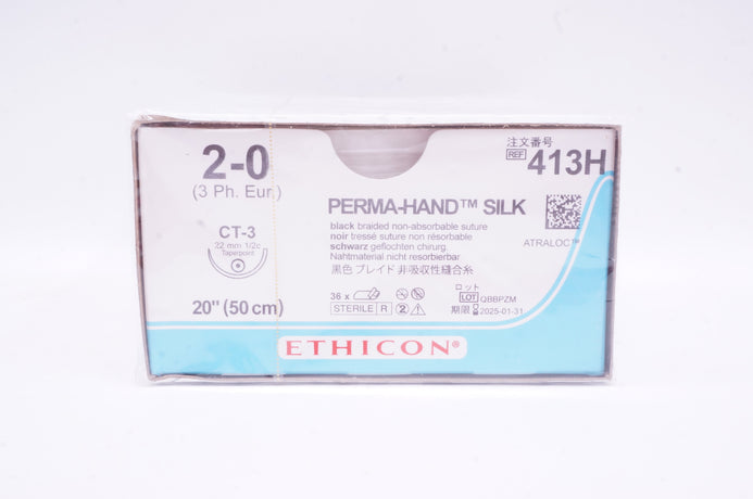 - Ethicon 413H 2-0 Perma-Hand Silk CT-3 22mm 1/2c Taperpoint 20 inch - Box of 36