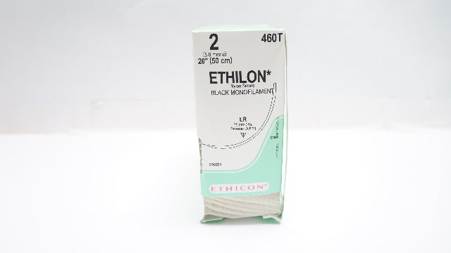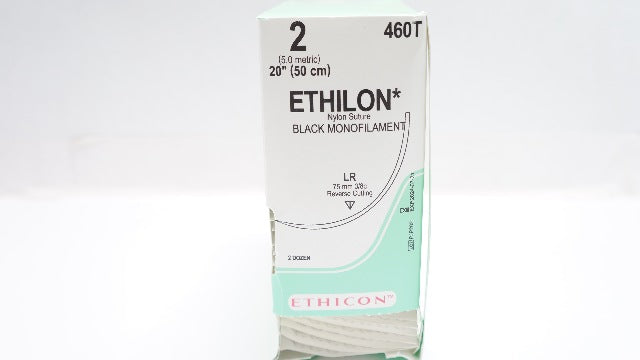 Ethicon 460T Ethilon Black Monofilament LR 75mm 3/8c Reverse Cut.20In-Box of 24