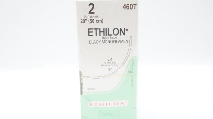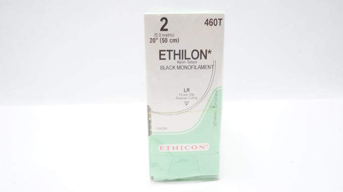 Ethicon 460T Ethilon Black Monofilament LR 75mm 3/8c Reverse Cut.20In- Box of 24