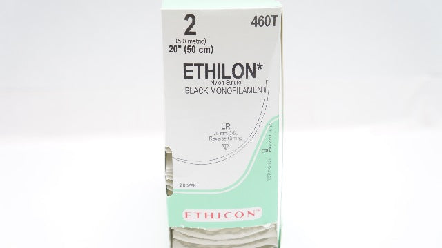 Ethicon 460T Ethilon Black Monofilament LR 75mm 3/8c Reverse Cut.20In-Box of 30