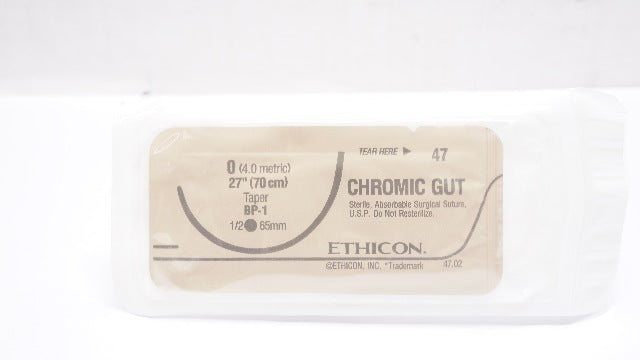 Ethicon 47 0 Chromic Gut Absorbable Surgical Suture BP-1 1/2c 65mm Taper, 27inch