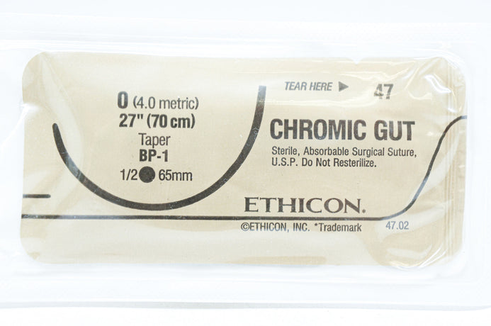 Ethicon 47 0 CHROMIC GUT, BP-1, 1/2 65mm, 27inch