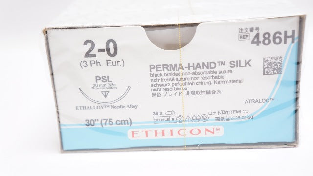 Ethicon 486H 2-0 Perma-Hand Silk PSL 30mm 3/8c Reverse Cutting 30in. - Box of 36