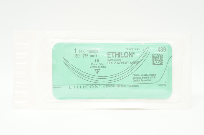Ethicon 489 1 ETHILON Nylon LR 75mm 3/8c Reverse Cutting, 30inch (x)