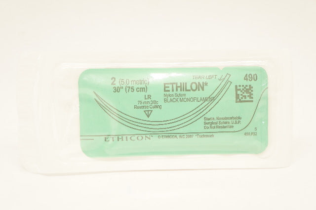 Ethicon 490 2 Ethilon Nylon Suture Black Monofilament LR 75mm 3/8c Reverse Cutting, 30inch
