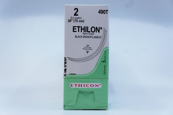 Ethicon 490T 2 ETHILON, LR, 75mm 3/8c, 30inch ~ Pack of 24