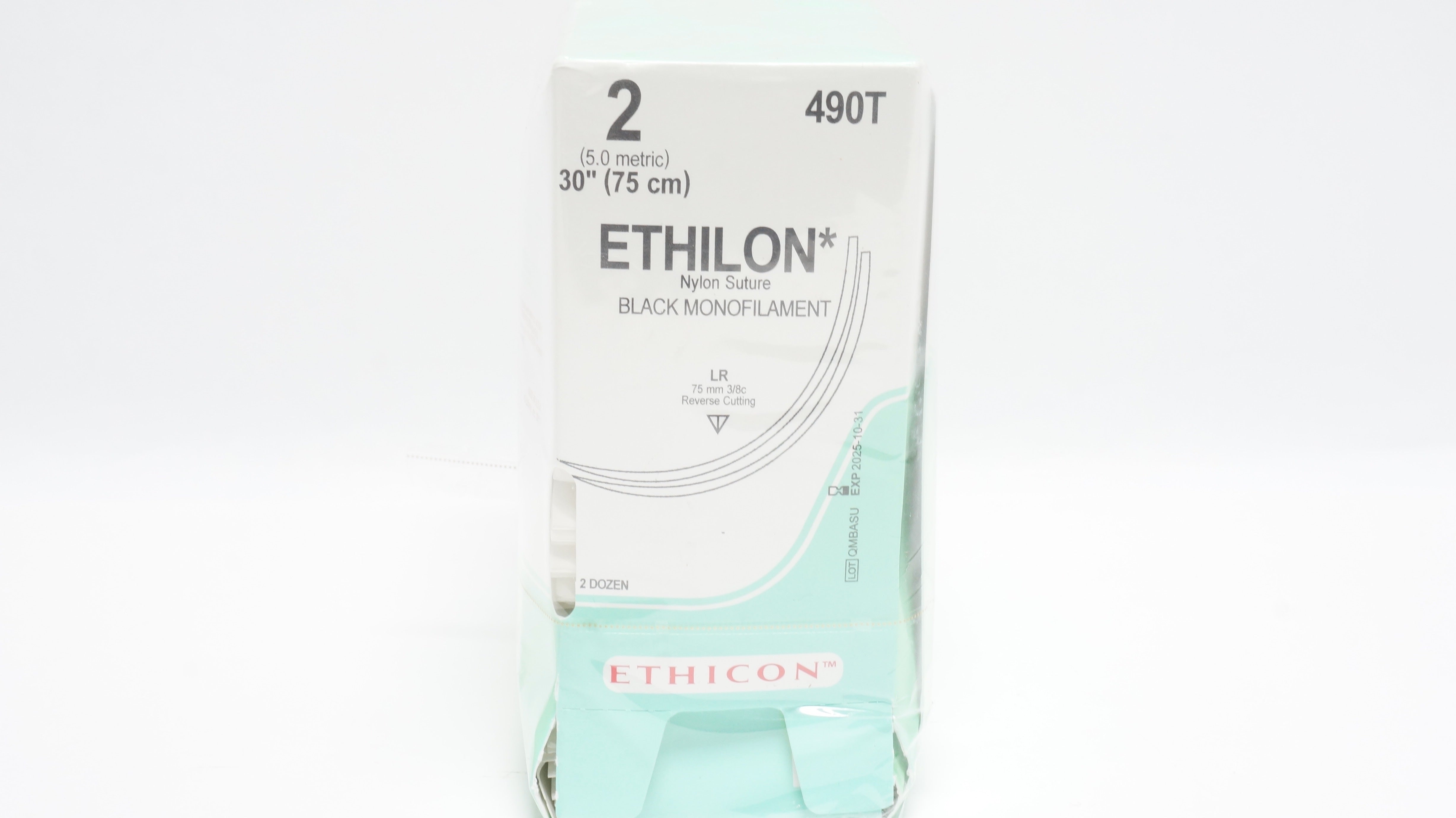 - Ethicon 490T 2 ETHILON, LR, 75mm 3/8c, 30inch - Pack of 24 (x)
