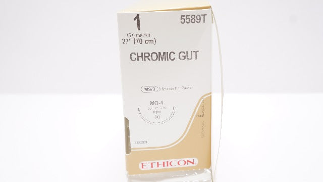 Ethicon 5589T 1 Chromic Gut MO-4 36 mm 1/2c Taper MS/3 27In - Box of 24