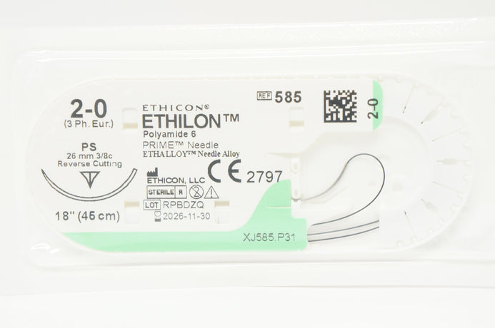 Ethicon 585 2-0 ETHILON Non-Absorbable Stre PS 26mm 3/8c Reverse Cutting, 18inch