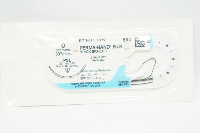 Ethicon 590 Perma-Hand Silk Black Braided 30in. PSL 30mm 3/8c Reserve Cutting