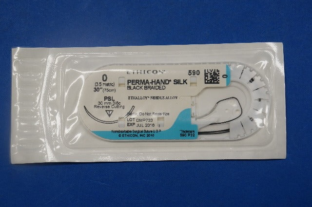 Ethicon 590H 0 PERMA-HAND SILK, PSL 30mm 3/8c Reverse Cutting, 30 -Box of 29