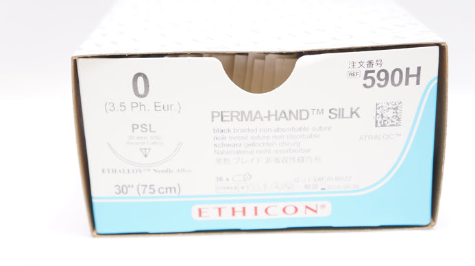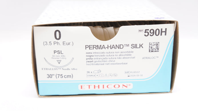 Ethicon 590H 0 PERMA-HAND SILK PSL 30mm 3/8c Reverse Cutting, 30inch - Box of 28