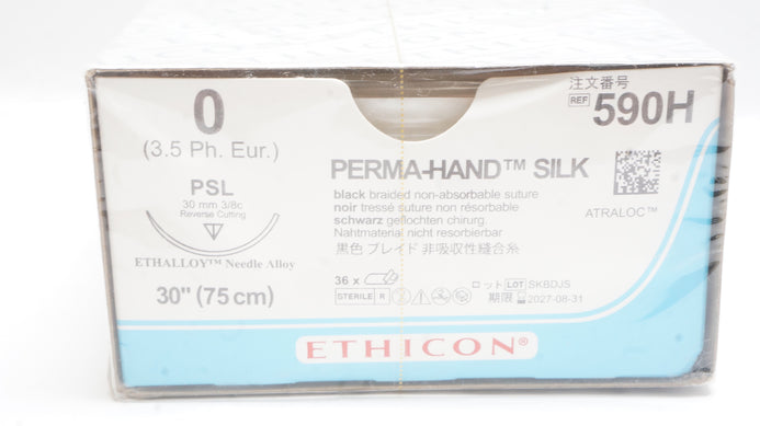 - Ethicon 590H 0 PERMA-HAND Stre PSL 30mm 3/8c Reverse Cutting, 30inch - Box of 36