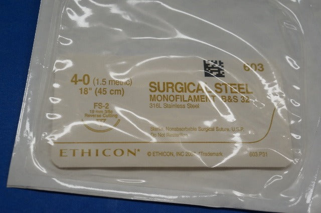Ethicon 603 Surgical Steel, FS-2 19mm 3/8c Reverse Cutting, 18", Size 4-0