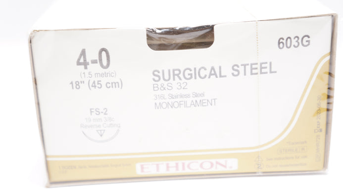 - Ethicon 603G 4-0 Monofilament FS-2 19mm 3/8c Reverse Cutting 18inch(x)-Box of 12