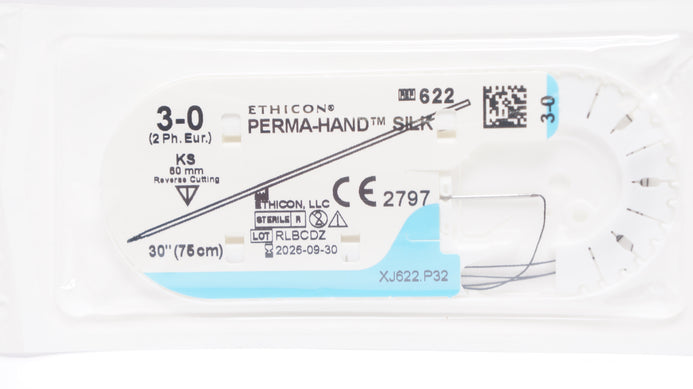 Ethicon 622 3-0 Perma-Hand Silk Surgical Stre KS 60mm Reverse Cutting, 30inch