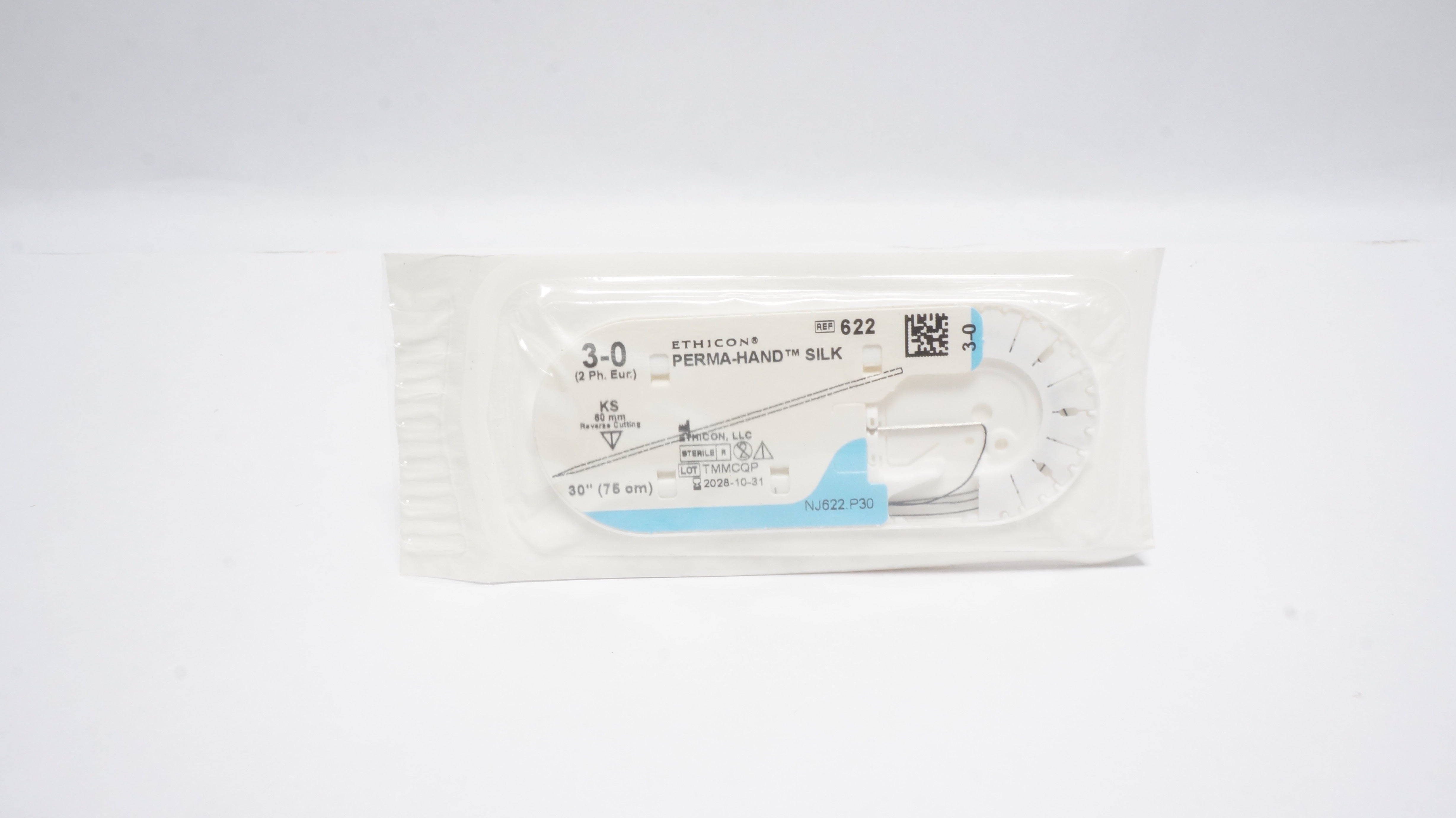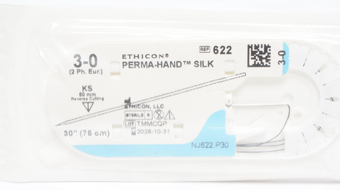 Ethicon 622 3-0 Perma-Hand Silk Surgical Stre KS 60mm Reverse Cutting 30inch