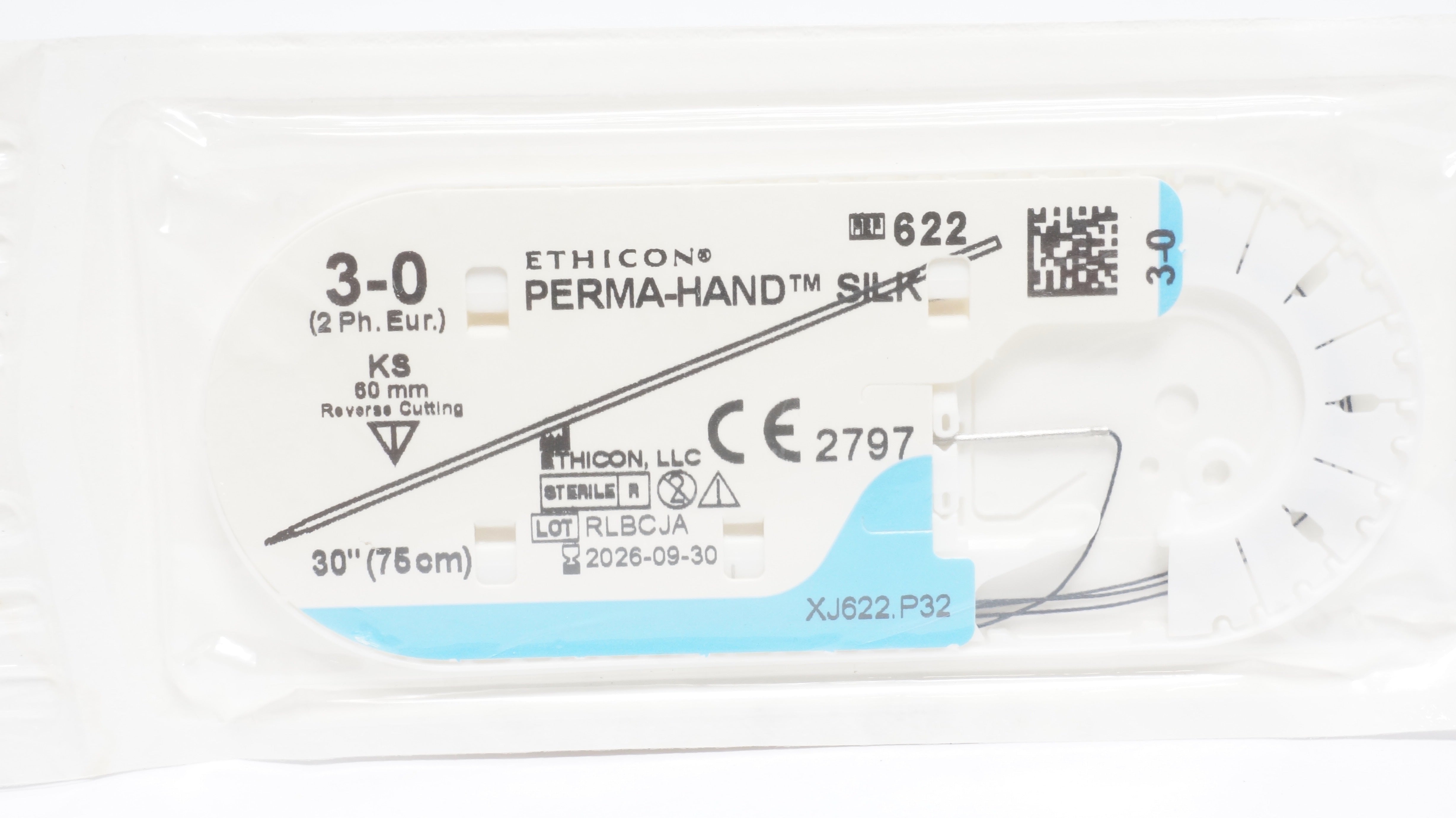 Ethicon 622 3-0 Perma-Hand Silk Surgical Stre KS 60mm Reverse Cutting 30inch