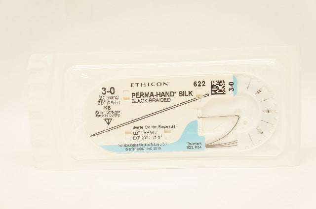 Ethicon 622 3-0 Perma-Hand Silk Surgical Stre KS 60mm Reverse Cutting 30inch (x)