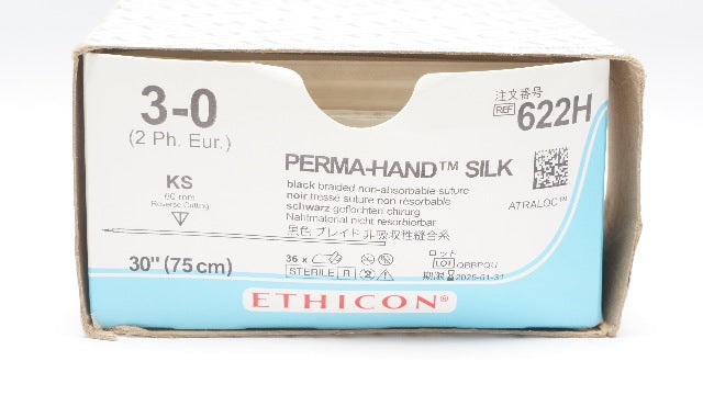 Ethicon 622H 3-0 Perma-Hand Silk Stre KS 60mm Reverse Cutting 30in(x) -Box of 31