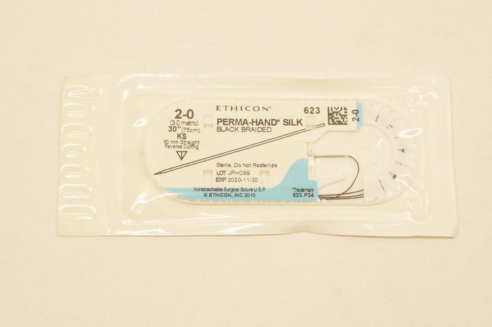 Ethicon 623 2-0 PERMA-HAND SILK, KS 60mm Straight, 30inch