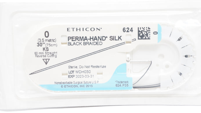 Ethicon 624 0 PERMA-HAND SILK Stre KS 60mm Straight Reverse Cutting 30inch (x)