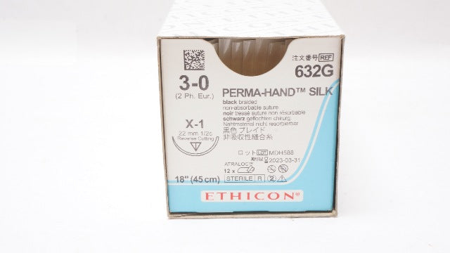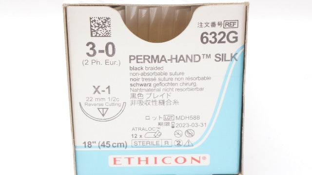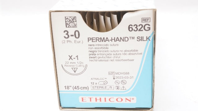 Ethicon 632G 3-0 Parma-Hand Silk Stre X-1 22mm 1/2c 18In - Box of 12