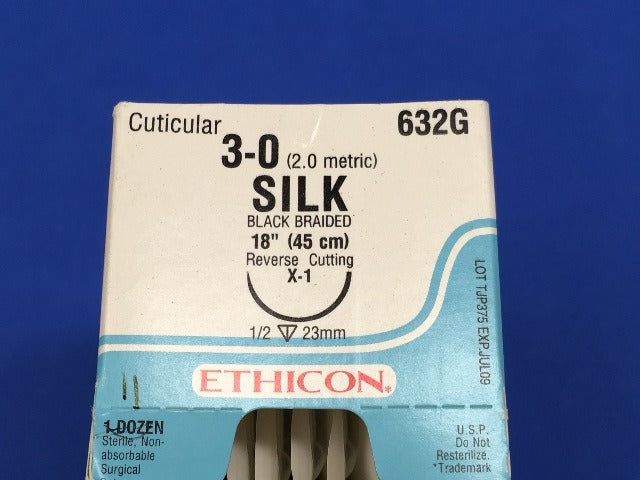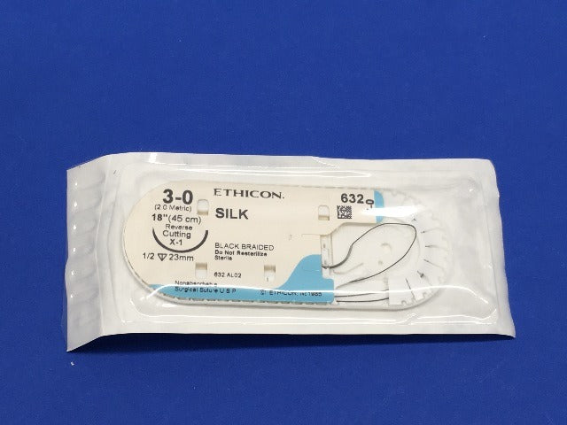 Ethicon 632G PERMA-HAND, Reverse Cutting, Non-Absorbable, X-1 22mm, Black Braided 18" 45cm, Size: 3-0