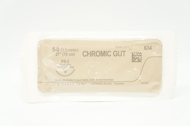 Ethicon 634 5-0 Chromic Gut FS-2 19mm 3/8c Reverse Cutting 27inch