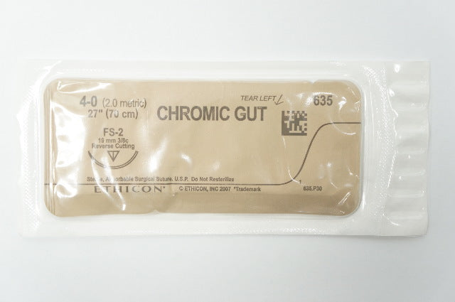 Ethicon 635 4-0 CHROMIC GUT, FS-2 19mm 3/8c Reverse Cutting, 27inch