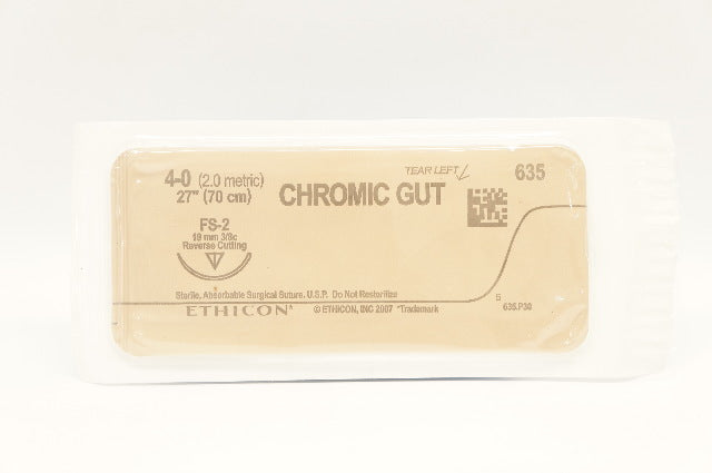 Ethicon 635 4-0 CHROMIC GUT Surgical Suture FS-2 19mm 3/8c Reverse Cutting, 27inch