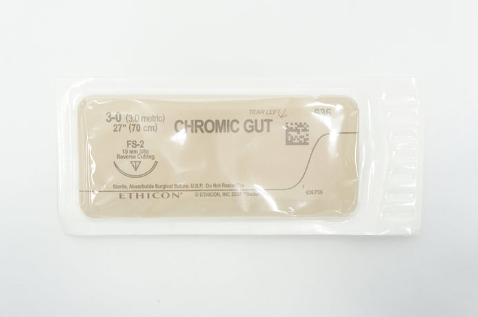 Ethicon 636 3-0 CHROMIC GUT, FS-2, 19mm 3/8c Reverse Cutting, 27 inch