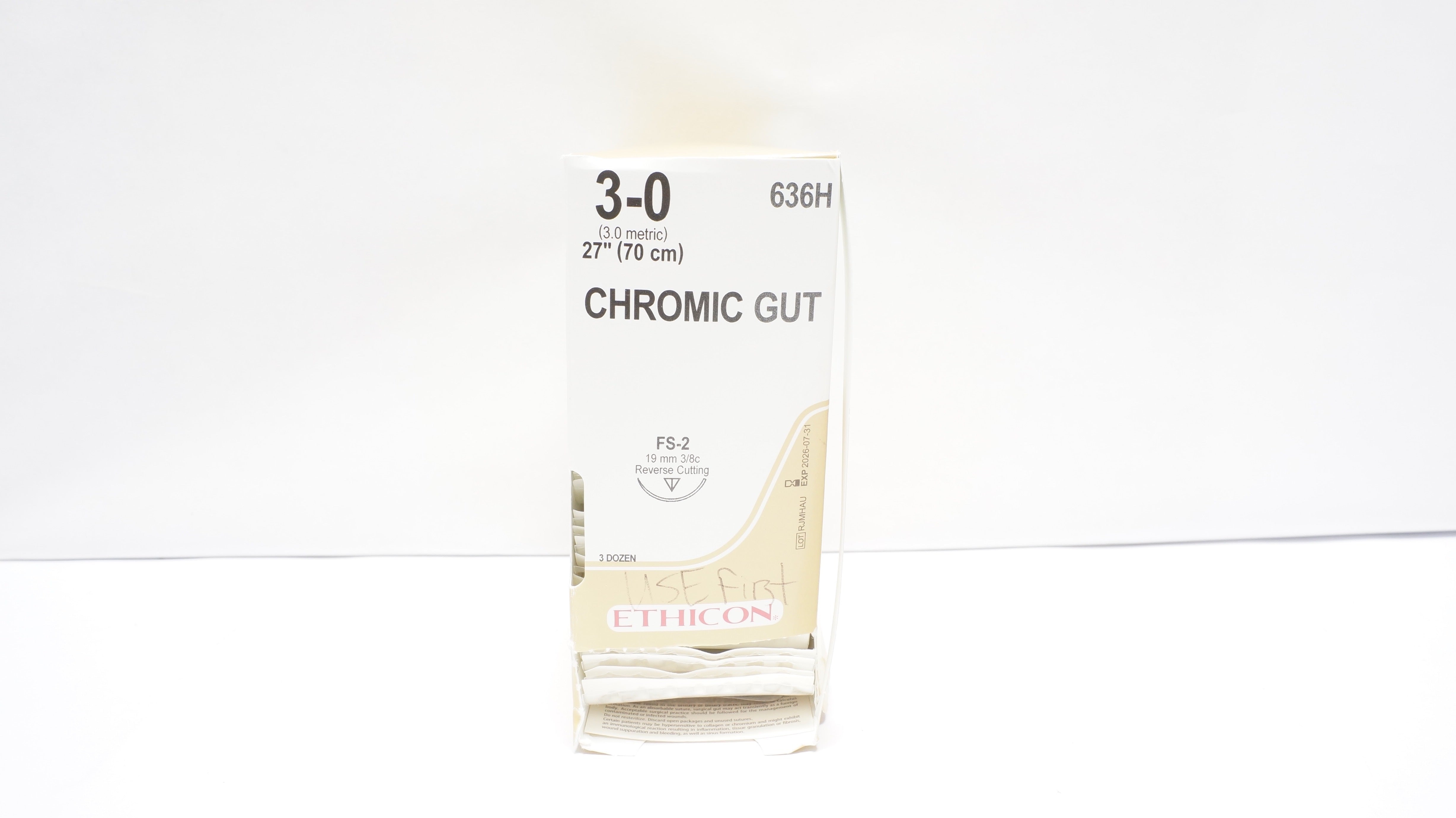 - Ethicon 636H 3-0 ChromicGut FS-2 19mm 3/8c Reverse Cutting 27inch - Box of 36
