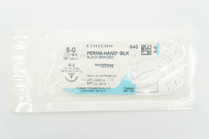 - Ethicon 640 5-0 PERMA-HAND SILK, P-3, 13mm 3/8c, Reverse Cutting, 18inch (x)