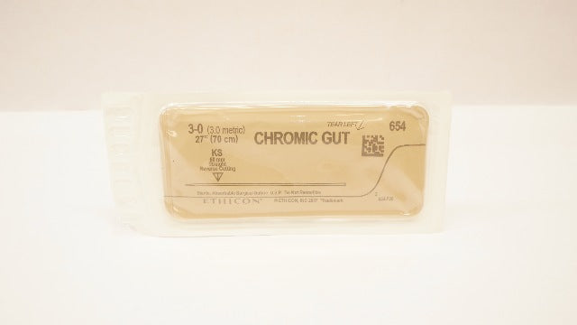 Ethicon 654 3-0 Chromic Gut, KS, 60mm Straight Reverse Cutting, 27inch (x)