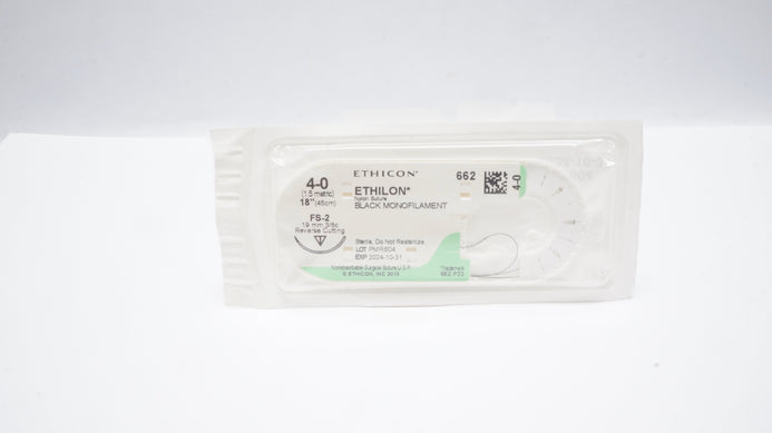 Ethicon 662 4-0 ETHILON Nylon, FS-2, 19mm 3/8c Reverse Cutting, 18inch