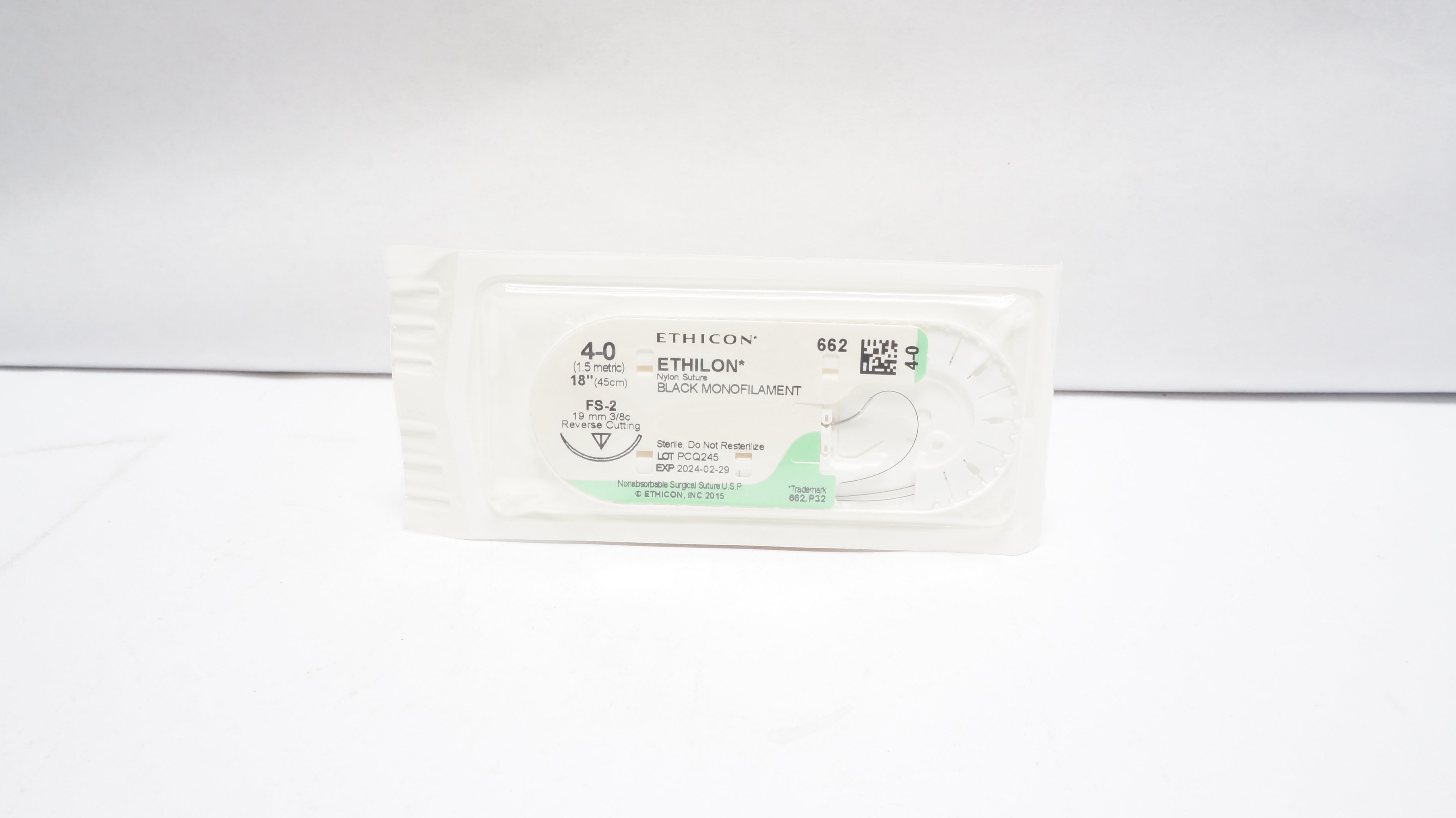 - Ethicon 662 4-0 ETHILON Nylon Stre FS-2 19mm 3/8c Reverse Cutting, 18inch (x)