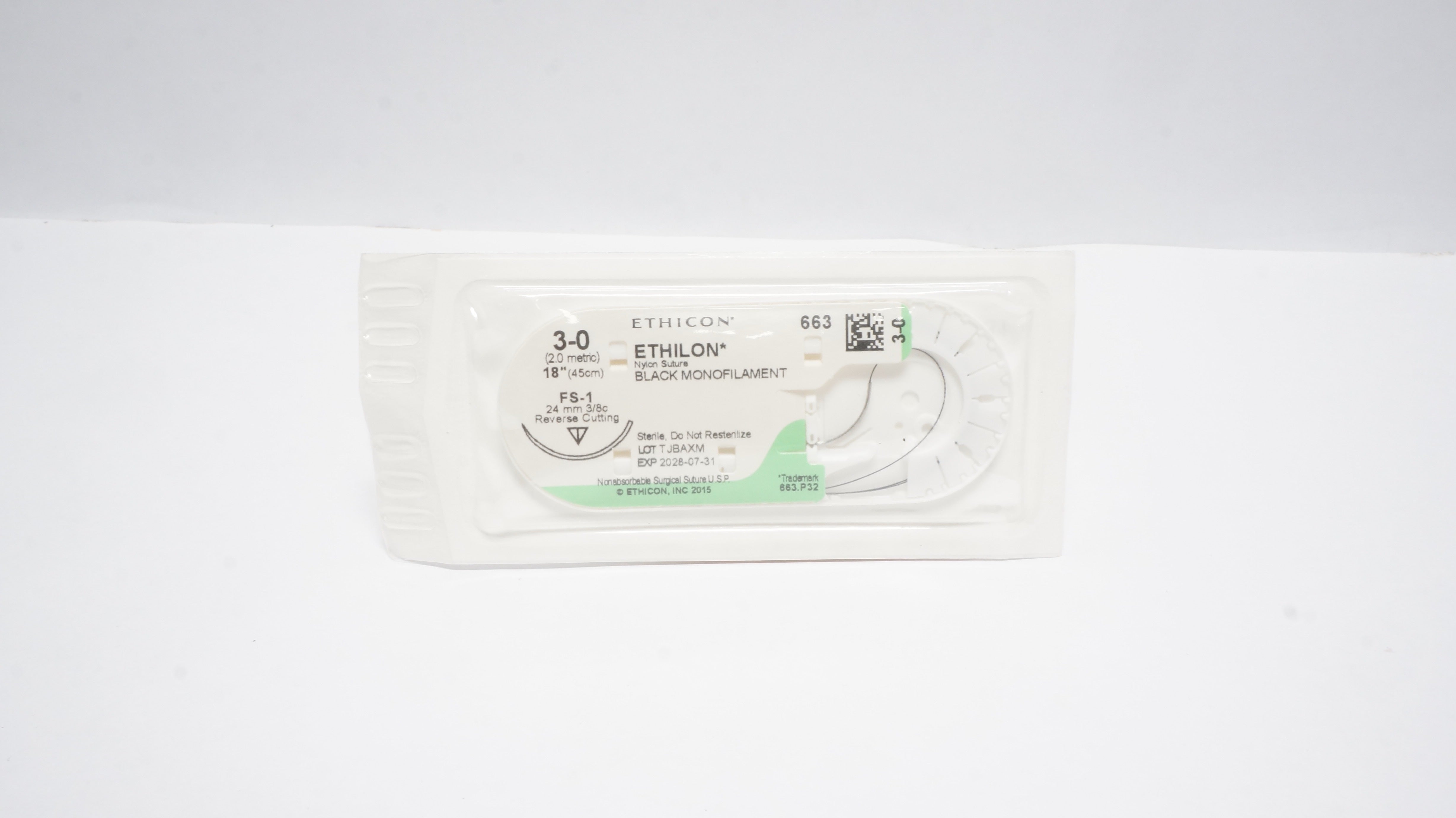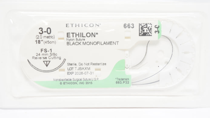 Ethicon 663 3-0 Ethilon Nylon Stre FS-1 24mm 3/8c Reverse Cutting 18inch