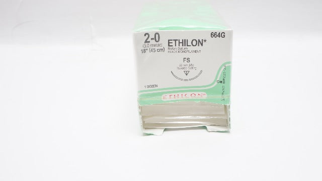 Ethicon 664G 2-0 Ethilon Nylon Suture Black Monofilament FS 26mm 3/8c Reverse Cutting